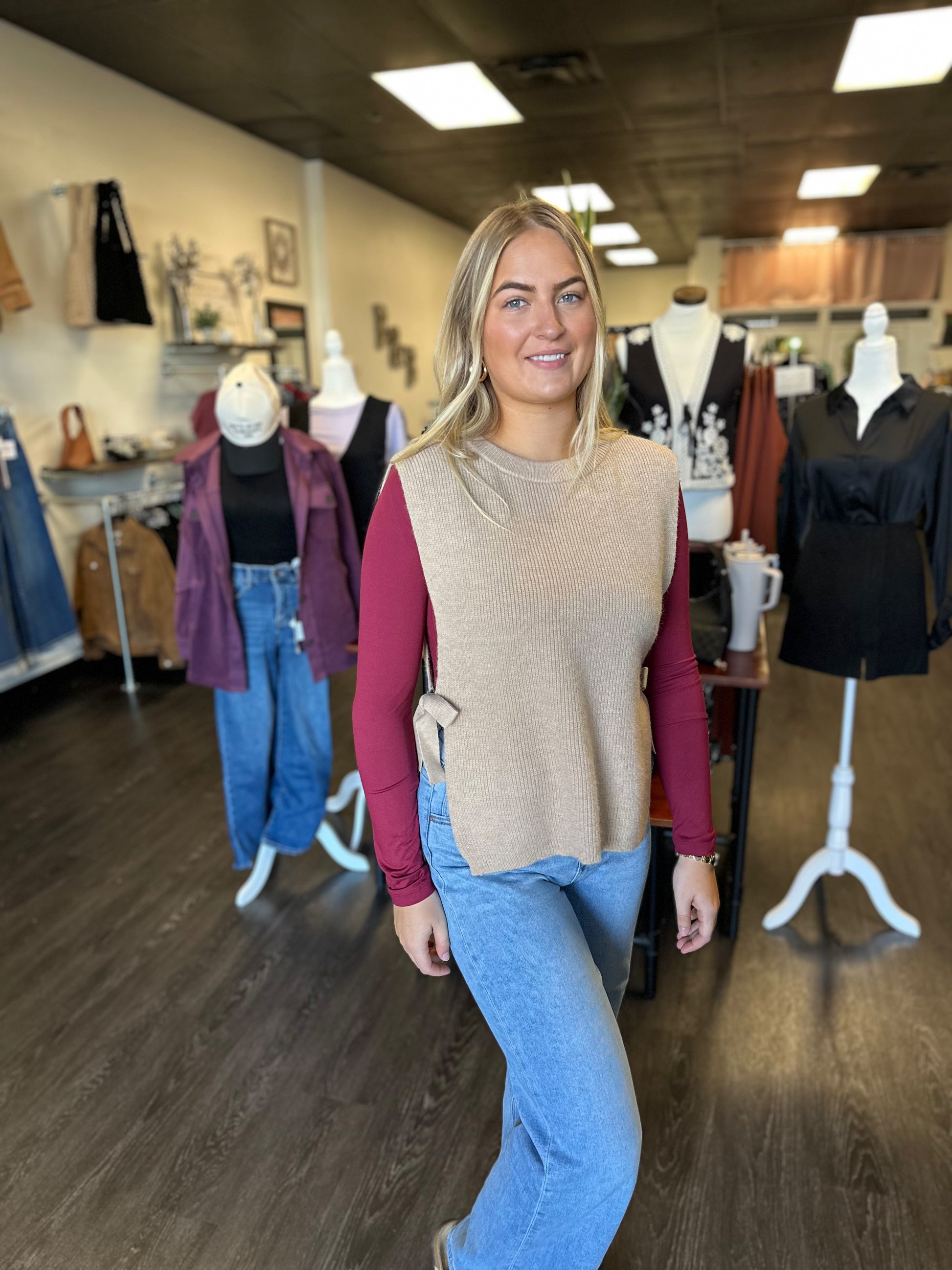 Bring fun to layering with the Dunwoody Side Tie Sweater Vest. This sleeveless, ribbed crewneck features a flirty side tie and a playful high-low hem for added movement. Soft and cozy, it’s perfect to mix and match over your favorite tops, adding a stylish twist to any outfit.