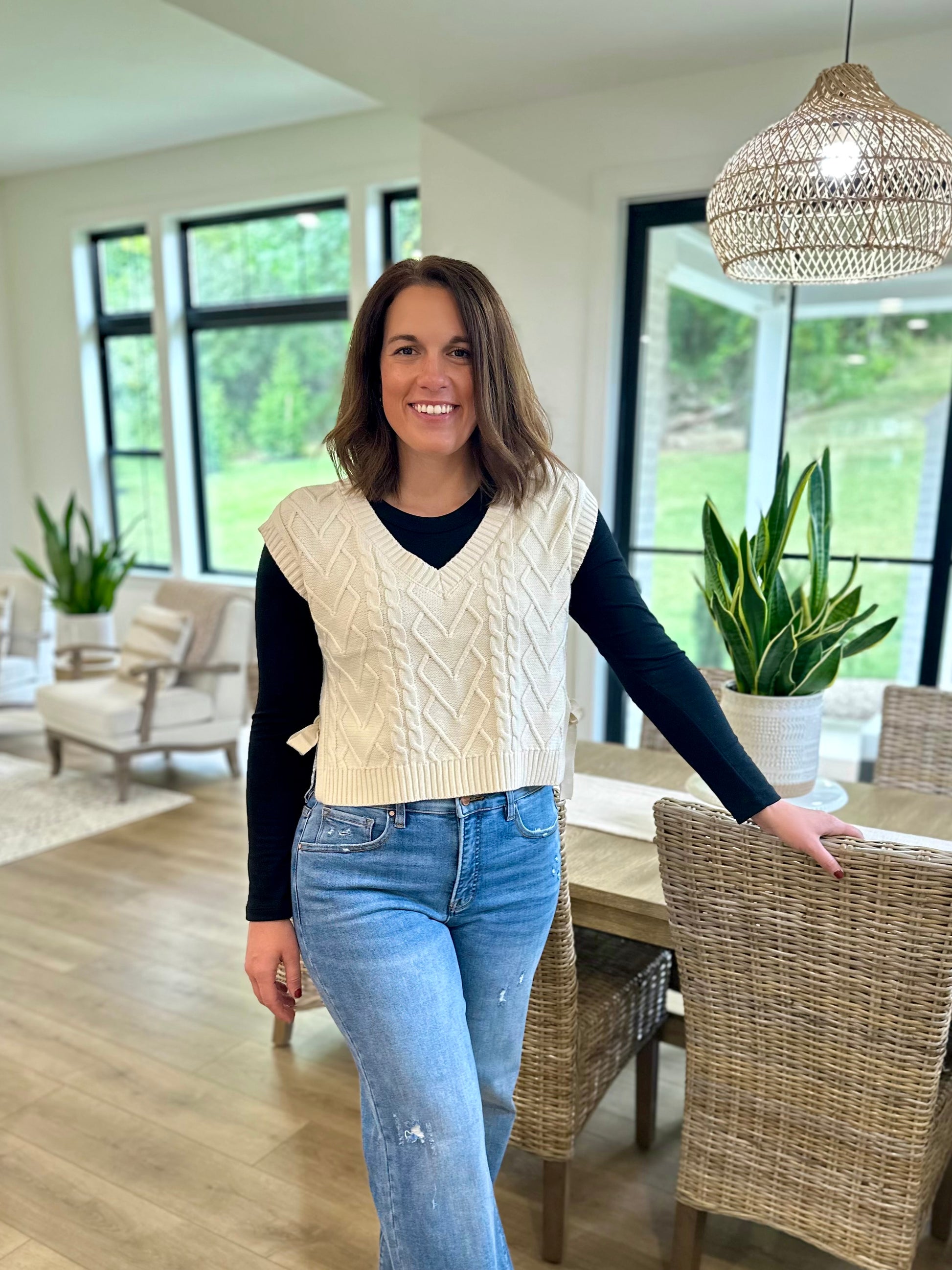 The Hollis Knit Sweater Vest is your new go-to for effortless cool. With its playful v-neck and breezy sleeveless design, it’s perfect for layering or rocking solo. The tie side adds a fun twist, while drop shoulders and a relaxed fit keep things comfy and casual. Crafted from cozy cable knit, this basic staple brings texture and charm to any outfit.