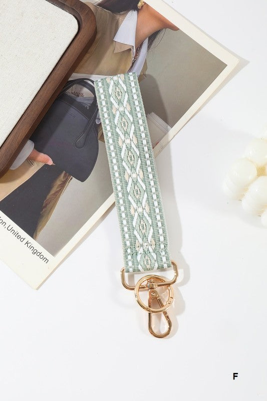 Keep your keys close and your style closer with these Jacquard Weave Wristlet Keychains. Featuring a trendy pattern and double clip keyring, they add a playful touch to your essentials while offering secure, easy access. Accented with durable gold hardware, these wristlets blend fashion and function seamlessly for everyday convenience.