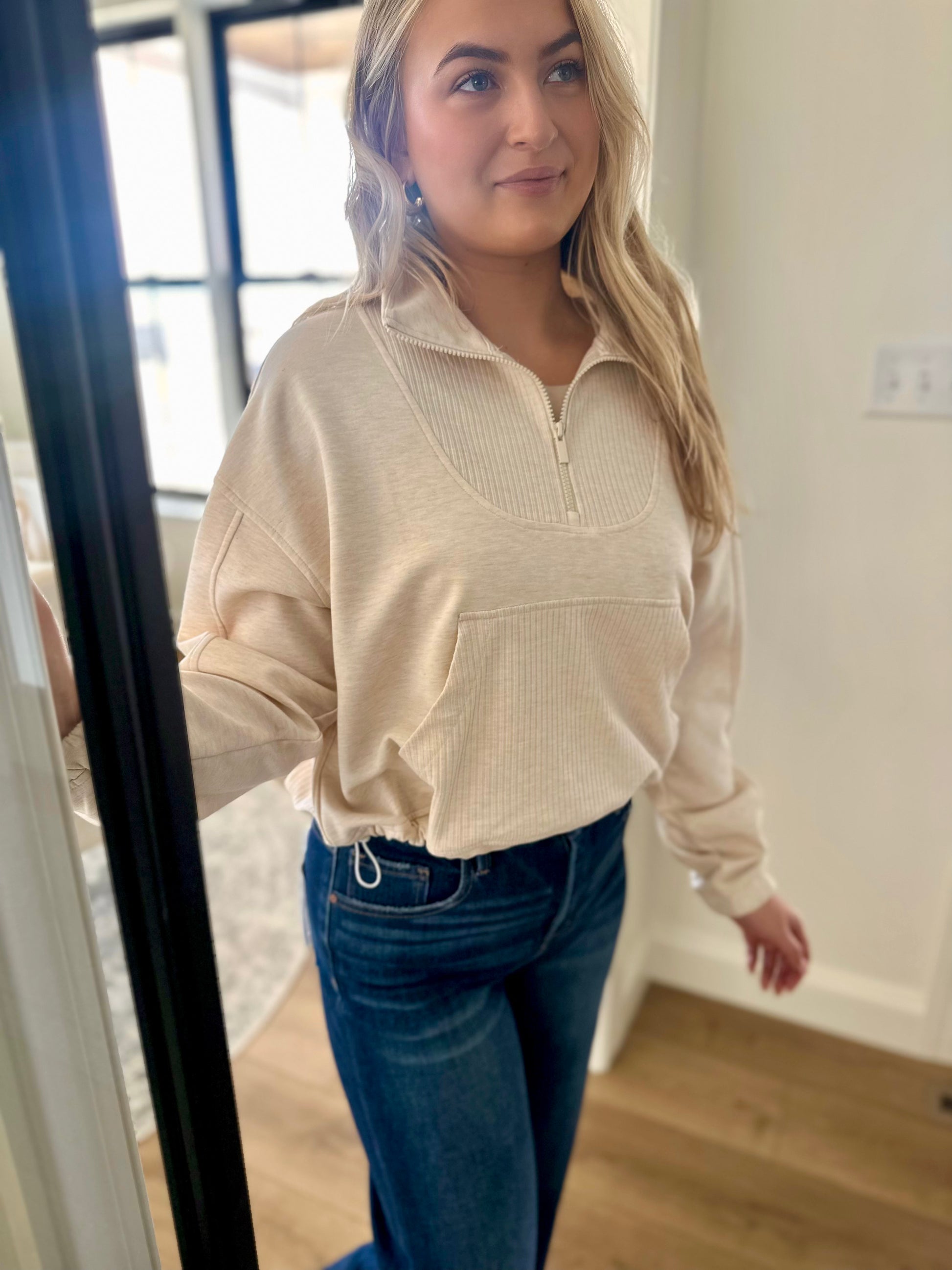 The Laredo Scuba Half Zip Sweatshirt combines comfort with versatile style. Crafted from soft, stretchy scuba fabric, this collared pullover features a convenient half-zip closure and ribbed detailing for a polished look. The roomy kangaroo pocket adds practical functionality, while the relaxed fit makes it effortless to layer or wear solo. Perfect for transitional weather, this sweatshirt pairs seamlessly with everything from jeans to joggers, making it an essential addition to any wardrobe.
