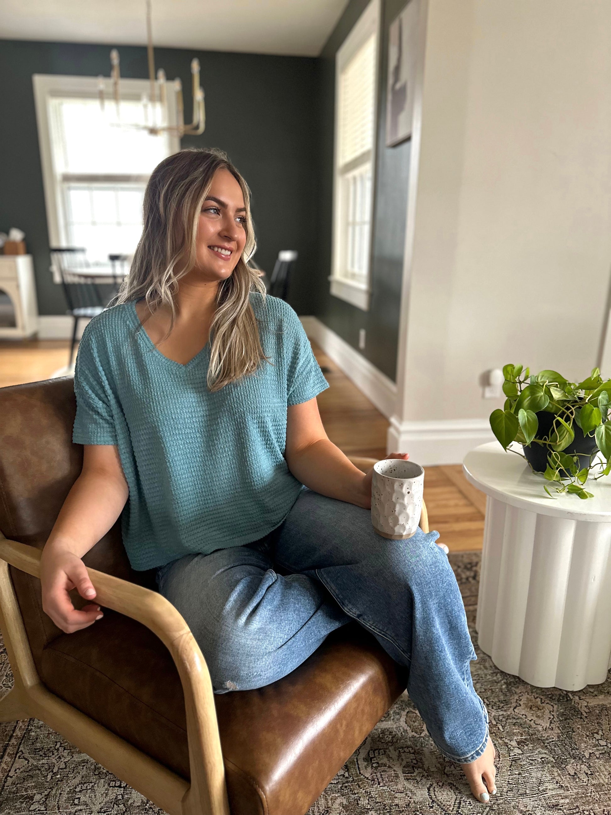 Introducing the Lockington Waffle Knit Top - the ultimate in casual comfort. With a vneck, short sleeves, and drop shoulder design, this top is perfect for everyday wear. The jacquard pattern adds a touch of style, while the back patch and seam detail provide both functionality and flair. And with its boxy cut and oversized fit, you'll never want to take this soft top off!