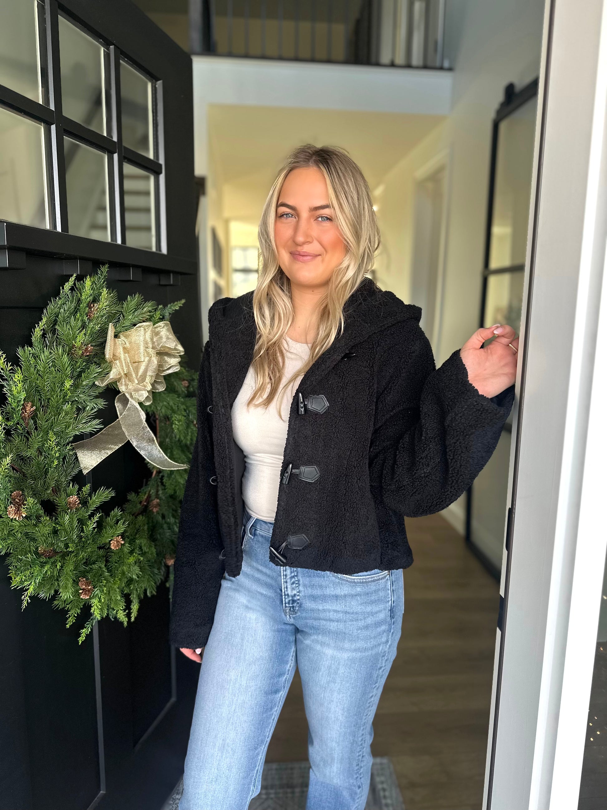 Wrap yourself in effortless warmth with the Mandan Sherpa Jacket. This hooded long-sleeve essential features a distinctive toggle clasp closure and sumptuous sherpa lining that feels as luxurious as it looks. Perfect for layering or wearing solo, its plush texture delivers cozy comfort without compromise. Whether you're heading out for the day or settling in at home, this versatile piece combines style with the softness you'll want to reach for again and again.