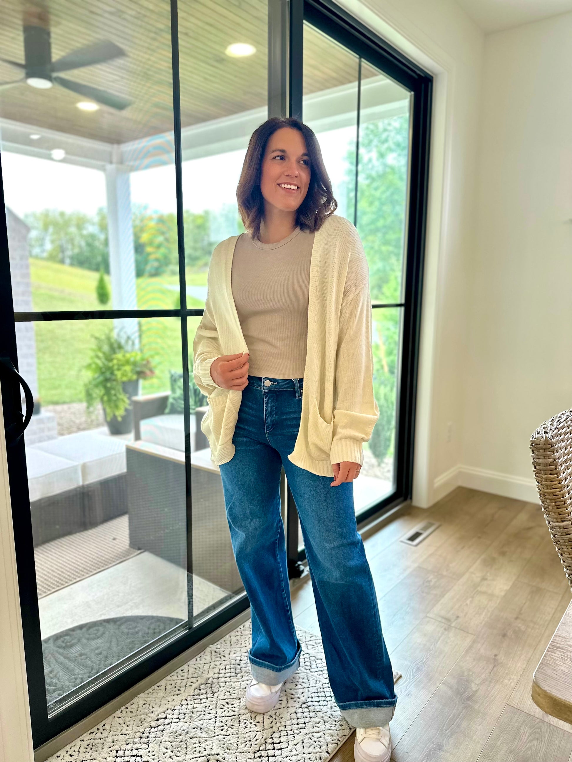 Wrap yourself in cozy comfort with the Plover Oversized Cardigan. This relaxed-fit layer features long sleeves, an open front, and handy pockets, perfect for stashing your essentials or keeping your hands warm. Ribbed cuffs and hem add a snug touch while the oversized design lets you stay comfy and stylish all day long. Whether lounging or out and about, this cardigan is your go-to for effortless, playful coziness.