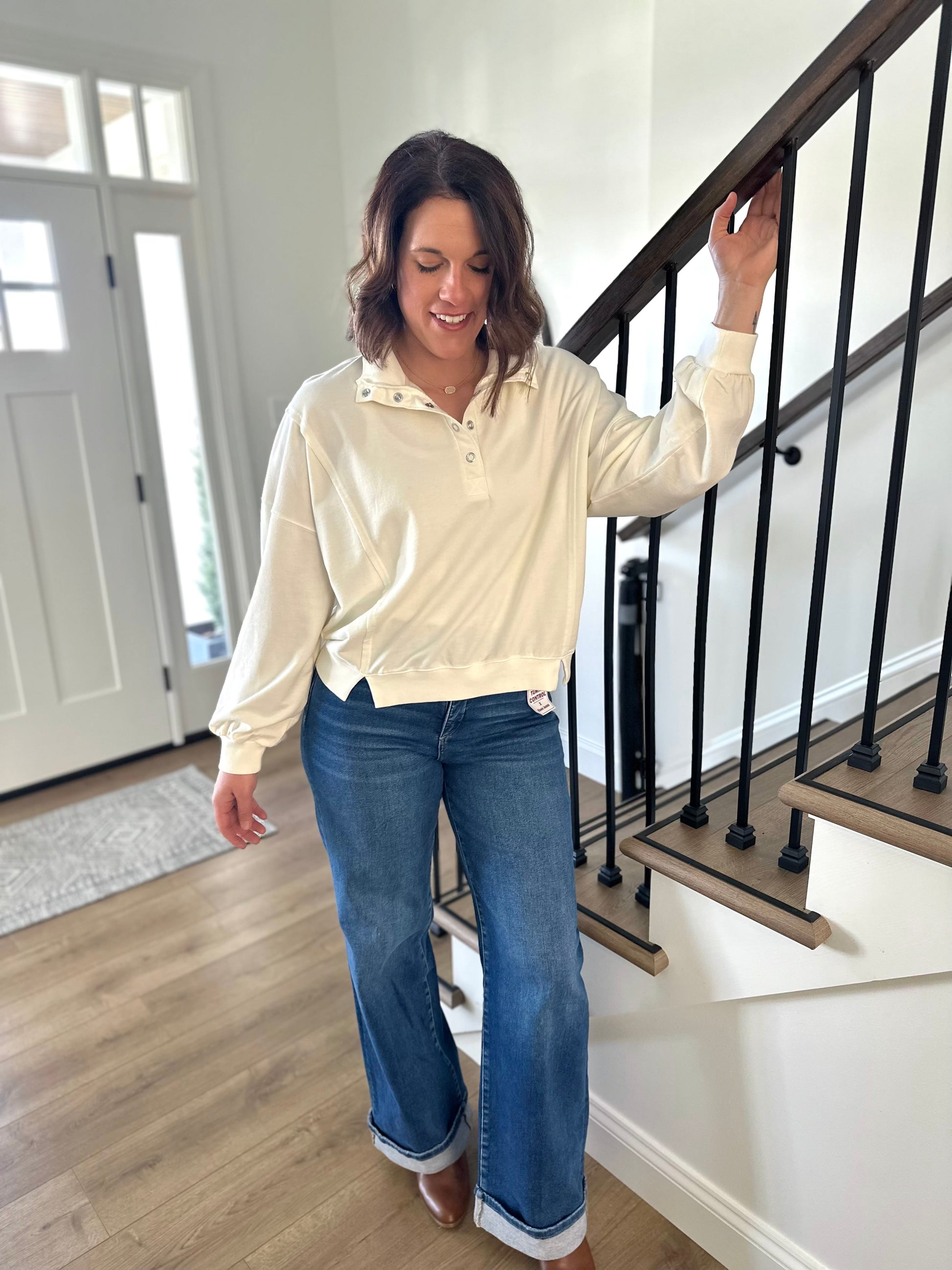 Experience effortless style and comfort with the Providence Snap Button Long Sleeve Top. Featuring a collared high neck and snap button front, this cozy top offers easy wear and a modern edge. The drop shoulder design and patchwork details add unique texture, while the acid wash finish gives it a trendy, worn-in look. Finished with a split hem for added movement, it’s perfect for layering or wearing on its own for a relaxed yet polished outfit. Elevate your casual wardrobe with this versatile essential.