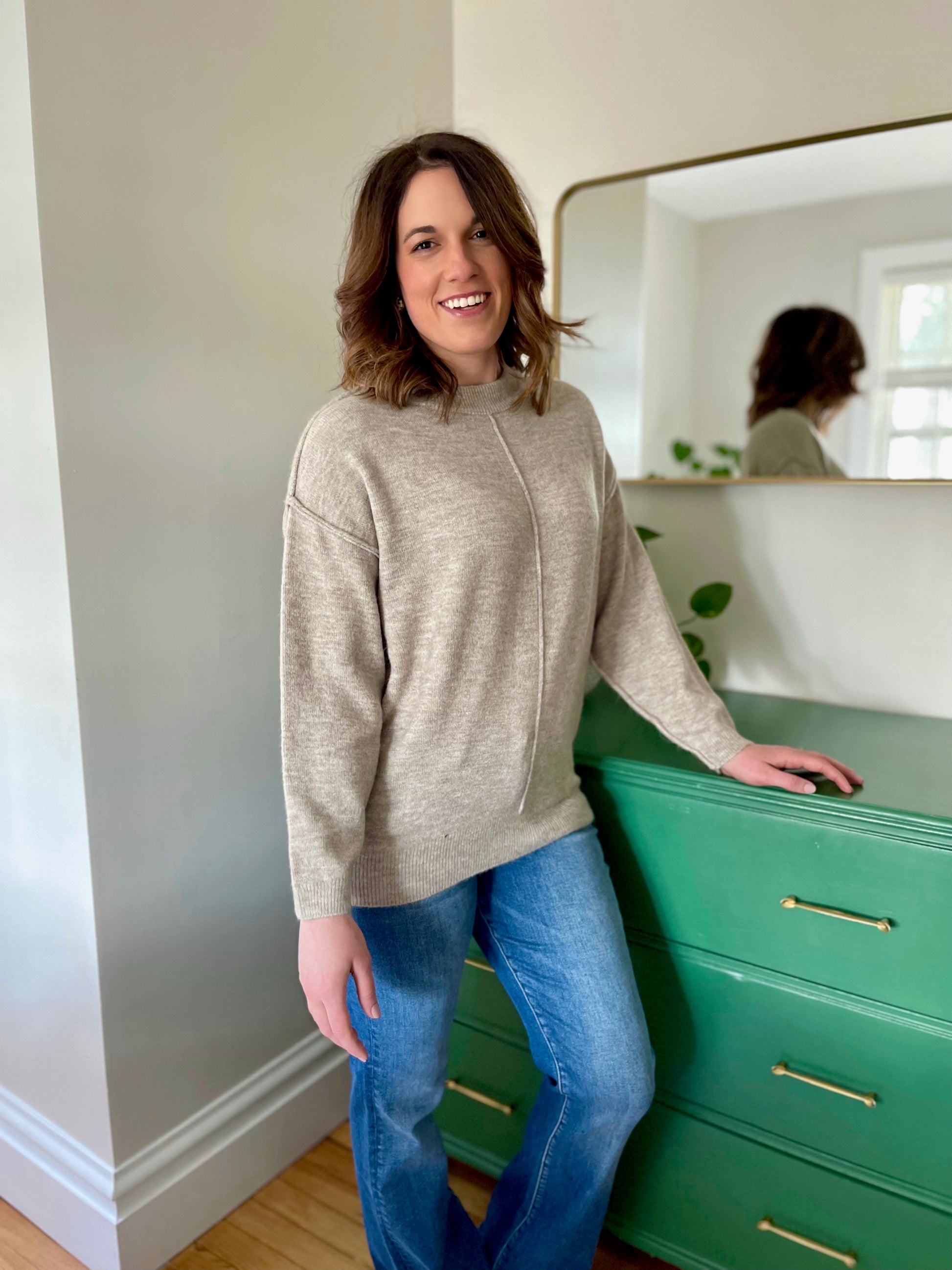 This crew neck sweater features a center seam for a touch of added style. With long sleeves and a relaxed fit, it provides comfort and versatility for casual everyday wear. Complete with ribbed hem and cuffs, this sweater is the perfect addition to any wardrobe.