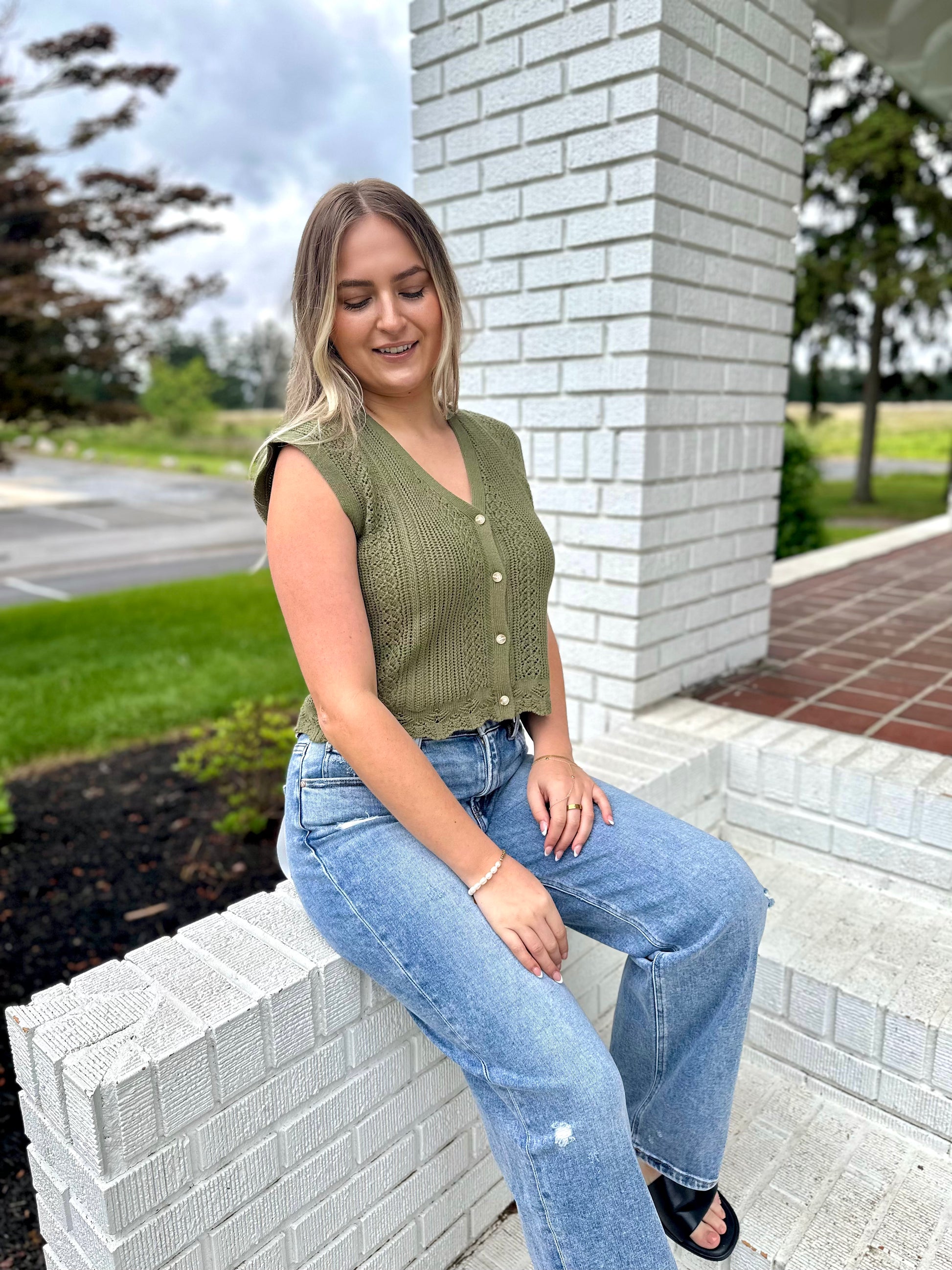 Elevate your wardrobe with our Selah Crochet Tank Top! This vneck, button-up top features a scalloped hem and delicate crochet details, adding a feminine touch to any outfit. The sleeveless design and varsity style make it both comfortable and stylish. Perfect for those looking to add some charm to their everyday look.